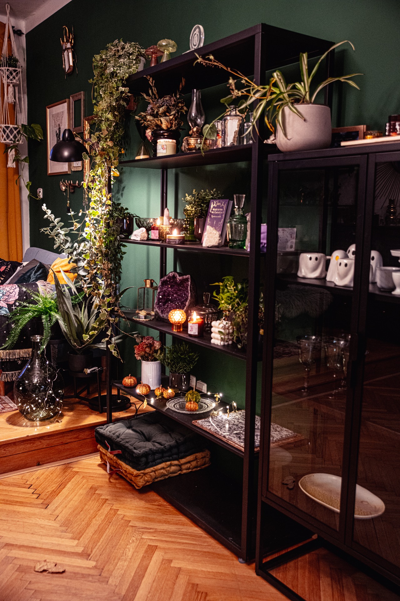 Prostor je plný pečlivě vybraných detailů – krystalů, objektů, drobností na stěnách i v prostoru. Nic není náhodné ani univerzální. Každý kout nabízí jiný vizuální příběh, který jinde nenajdete a který funguje jako hotová scéna pro focení i setkávání.
