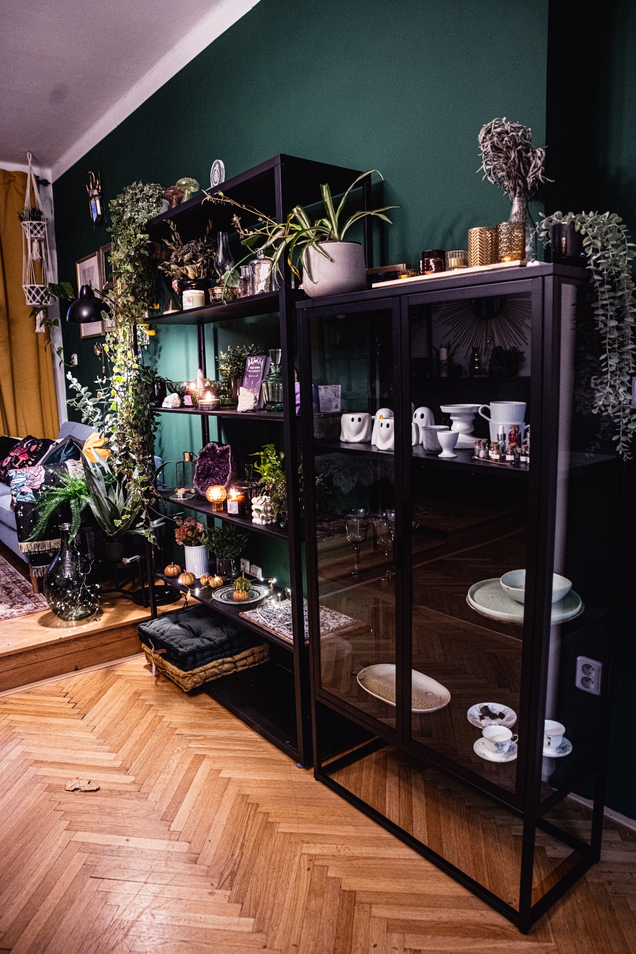 Prostor je plný pečlivě vybraných detailů – krystalů, objektů, drobností na stěnách i v prostoru. Nic není náhodné ani univerzální. Každý kout nabízí jiný vizuální příběh, který jinde nenajdete a který funguje jako hotová scéna pro focení i setkávání.